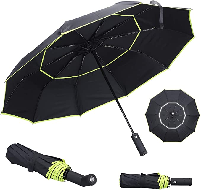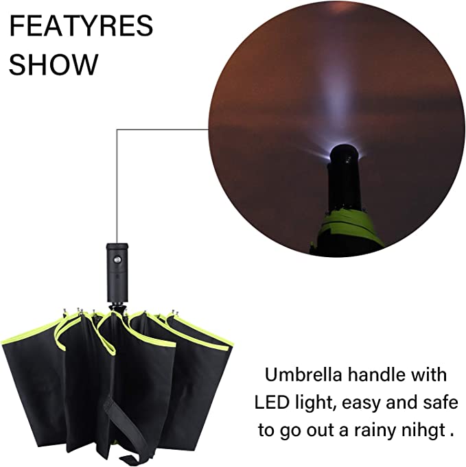 • LED FLASHLIGHT HANDLE UMBRELLA WITH SAFE REFLECTIVE BODER – Reflective Strip Design Get Noticed when crossing the streets at night with High-Tech Reflective Stripes. 360° of high visibility during low lights and rainy conditions. Important for children, pedestrians, and commuters. You will be safer when walking in the dark and rain.