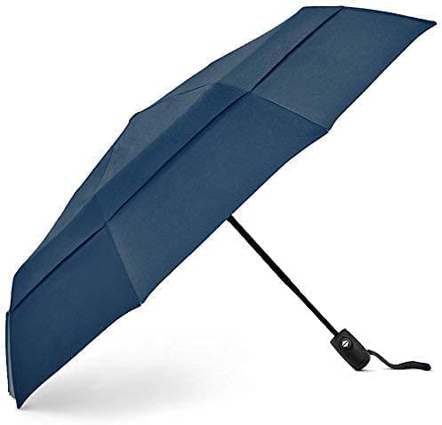 - Windproof – Our compact umbrella includes a double canopy that allows air to pass through without letting the rain in, while the non-slip handle prevents it from flying out of your hands.